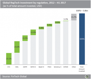 Earlier this year, research from FinTech Global found that GDPR was in the top three areas of legislation to receive the most investment. Since 2014, 23.1% of all RegTech investments, which amounts to nearly $878m, can be attributed to investments in KYC solutions.