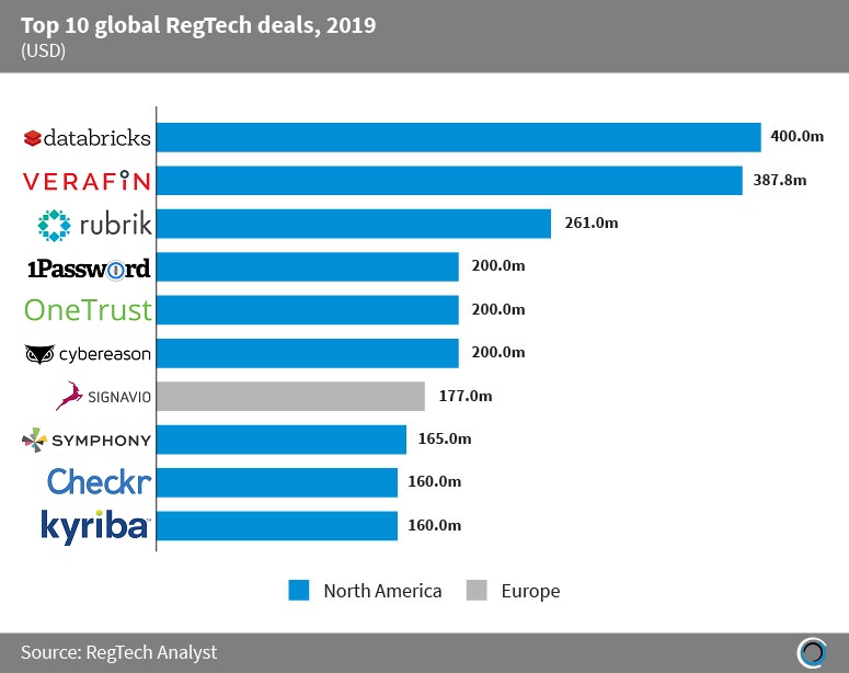 Over $2.3bn has been raised by the top 10 RegTech deals globally in 2019, which is equal to 16% of the total capital raised in the sector during the period.