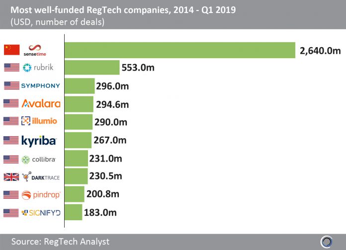 Beijing-based facial recognition company SenseTime, raised over $1.2bn in Q2 2018, across two Series C rounds, at a $4.5bn valuation, making it the most well-funded RegTech company to date having raised over $2.6bn.
