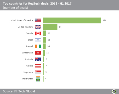 The US has been home to around two thirds of all RegTech deals since the beginning of 2012
